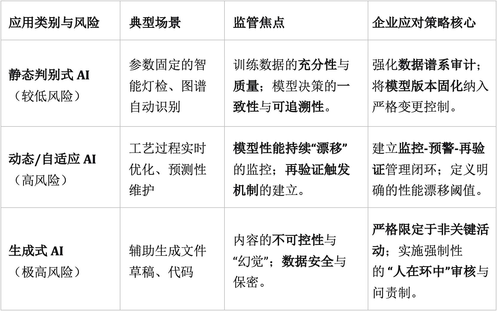 欧盟GMP附录22草案为不同类别的AI指明了差异化的控制要求,这为企业制定策略提供了直接依据: