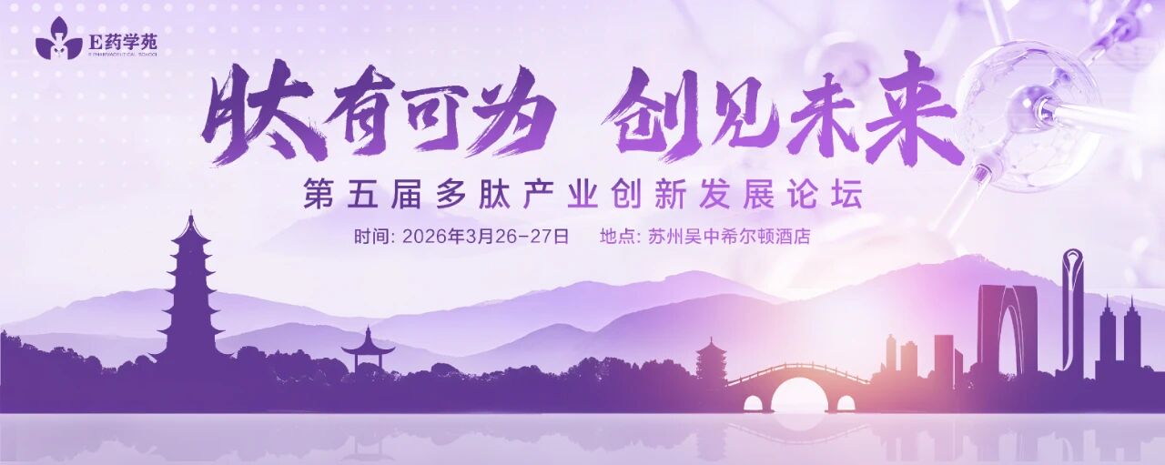 由E药学苑主办的第五届多肽产业创新发展论坛于2026年3月26-27日在苏州举行。论坛聚焦药用多肽、GLP-1及多肽减肥制剂等热门领域,设置8大专题会议、汇聚50+位行业专家、80+技术成果展示,聚集1200+行业人士参会,是链接多肽产业协作的重要平台。