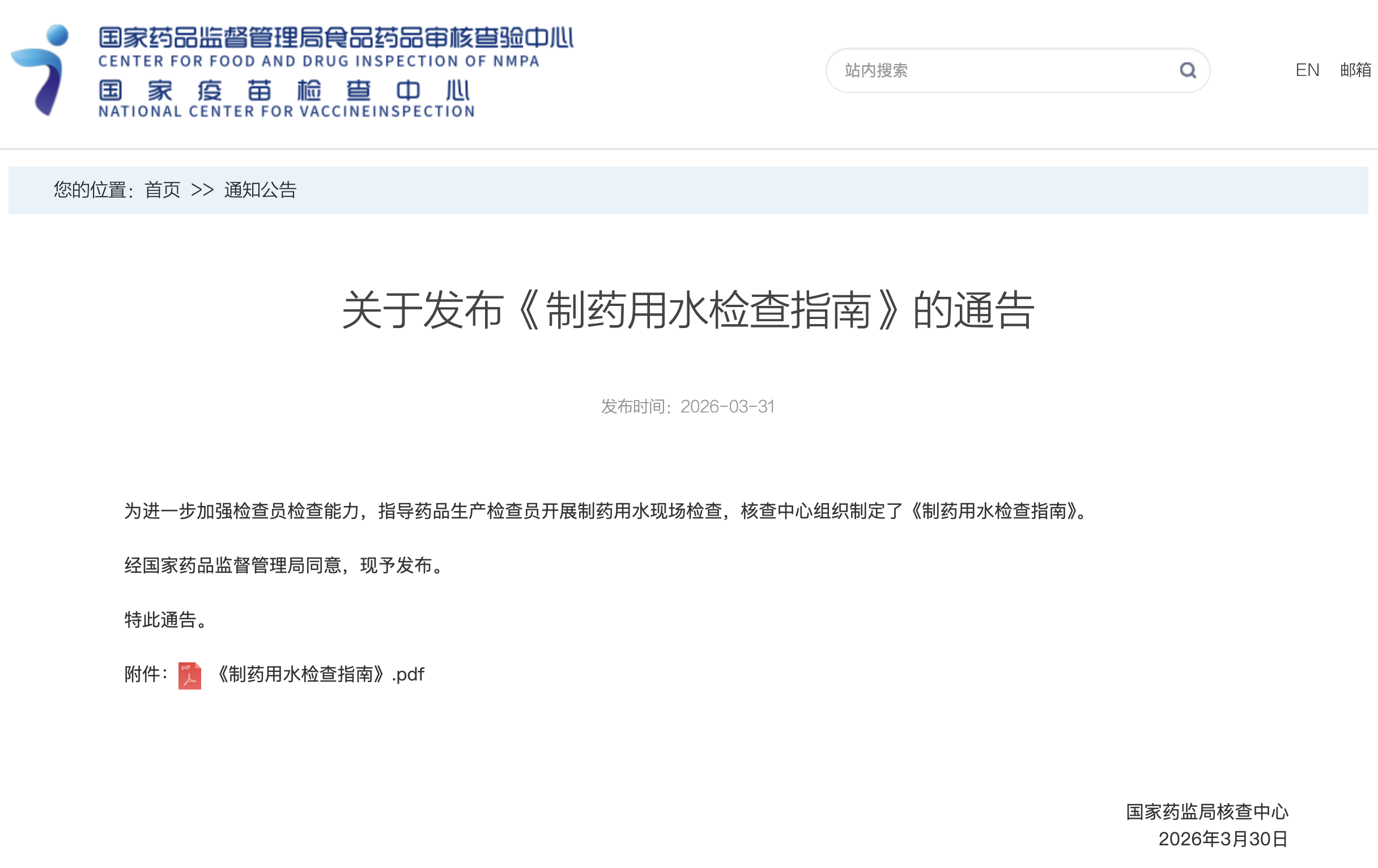 今天,国家药监局核查中心(CFDI)最新发布了一篇《制药用水检查指南》。